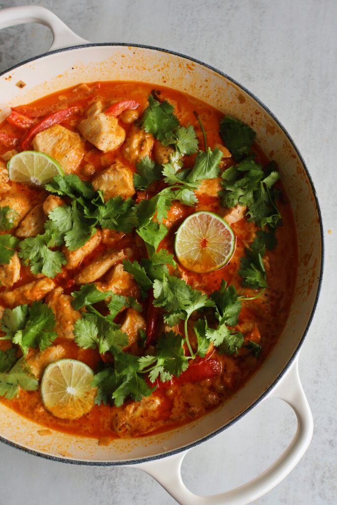 Sheet-pan chicken with a creamy maple dijon sauce. An easy weeknight staple made of crisp roasted veggies, tender chicken thighs and a sweet and tangy sauce.