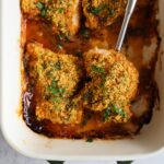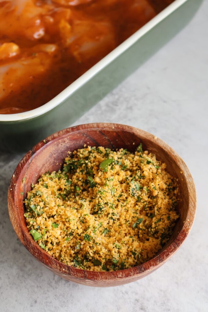 The chicken comes out tender and so flavorful, it just melts in your mouth. I love the added texture the breadcrumbs give in this recipe, so be sure not to skip them! You can easily substitute a gluten-free breadcrumb mix if you wanted to keep this gluten-free friendly.