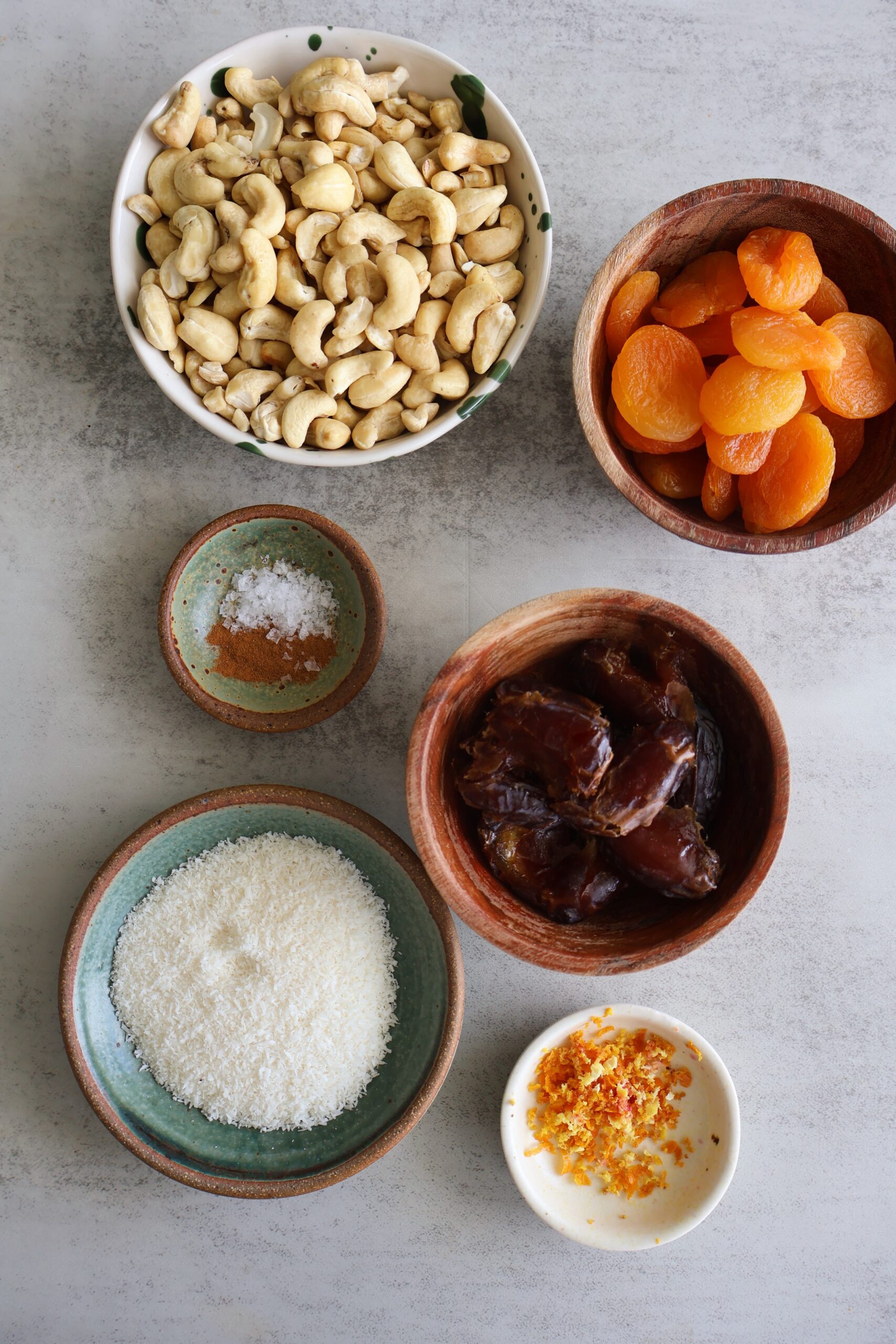 Ingredients you’ll need to make apricot cashew energy bites