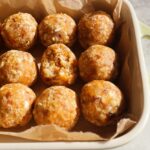 - With wet hands, scoop out about 1.5 tbsp of the mix to roll into balls, then place onto a parchment lined tray or baking dish. Refrigerate for at least 30 minutes to harden.