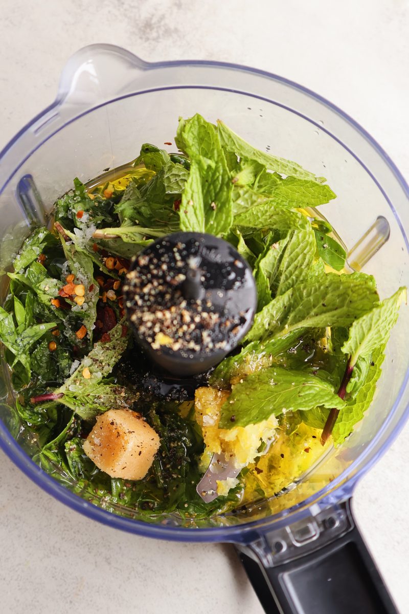 The zesty mint dressing is the star of the show, and is such a good sauce to pair with proteins. I love it on steak or salmon, or as a dipping sauce for wraps or summer rolls.
