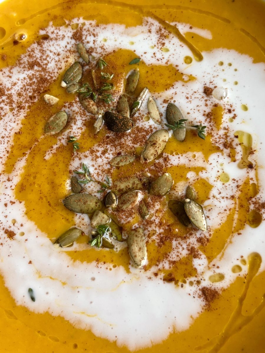 The soup is rich and creamy, with an added kick from cayenne pepper. It has a delicious sweetness from the coconut milk and veggies, and truly is the perfect nourishing comfort food to make this season.