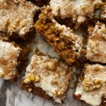 These bars are so delicious! I’ve never had carrot cake before, so I decided to give this recipe a try and it did not disappoint. I used flax eggs, subbed GF flour for oat flour, and topped it with a powdered sugar glaze.
