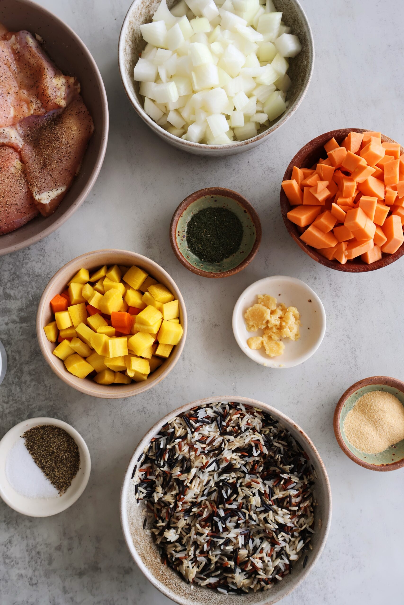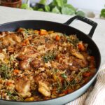 This nourishing chicken and wild rice skillet is the perfect fall & winter dish. It’s full of hearty ingredients like a wild rice blend, carrots, sweet potatoes and onion cooked in a spice blend with broth and pan-seared chicken thighs.