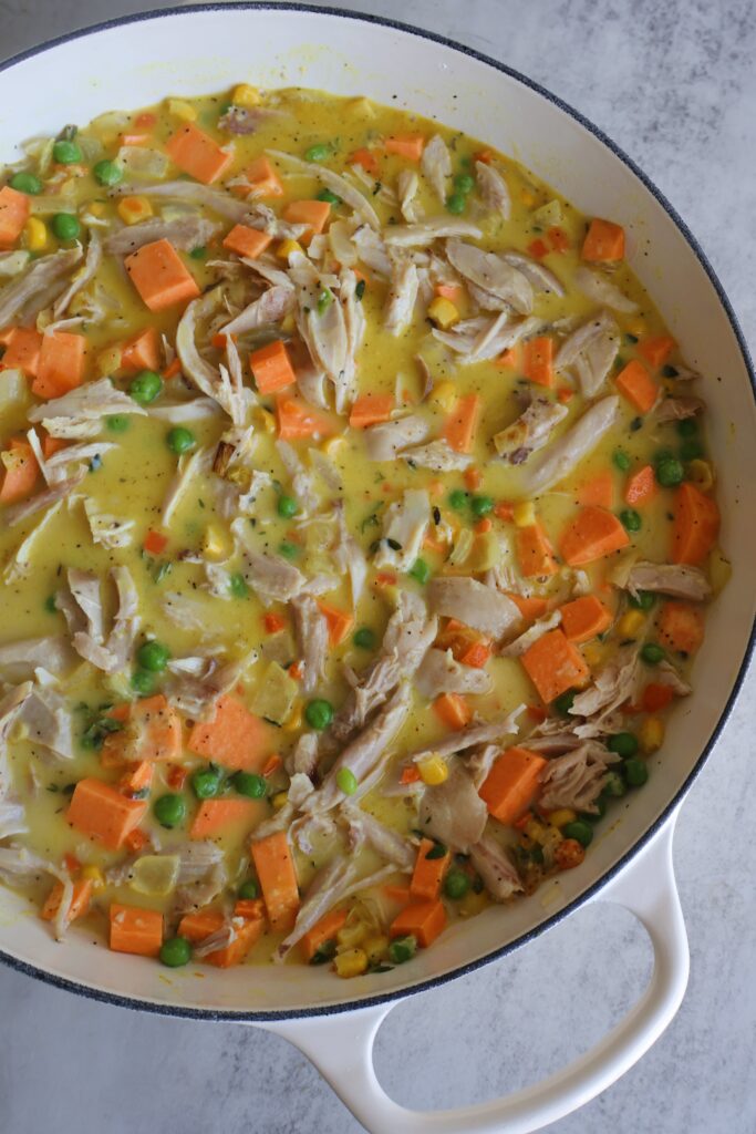 The dish is packed with savory flavor and can easily be customized. It has a creamy and hearty filling that can be made with any blend of vegetables you like.