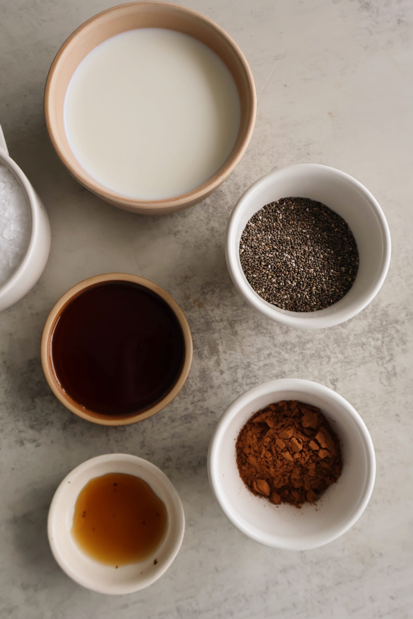 The base recipe to any chia pudding is chia seeds, your choice of milk, and any flavorings you like