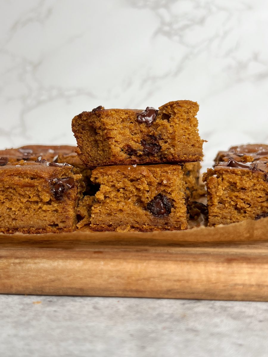 These chocolate chip pumpkin bars are moist, easy to make, and truly the perfect fall dessert. I can’t wait for you all to try them 🙂