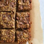 These bars have all the flavors of banana bread, but are lower in sugar and higher in fiber. They’re a great make ahead option for busy weeks, and leave your house smelling like a bakery. I love to pair them with a side of fruit, eggs, or yogurt for a completely balanced meal.