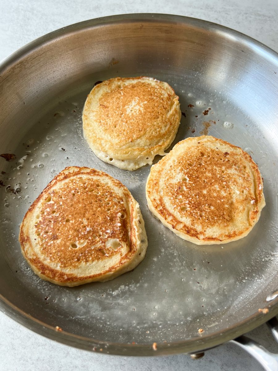These pancakes are sweet and fluffy, and truly so easy to whip up. You can even prep them ahead of time and store some in the freezer for a quick meal prep.