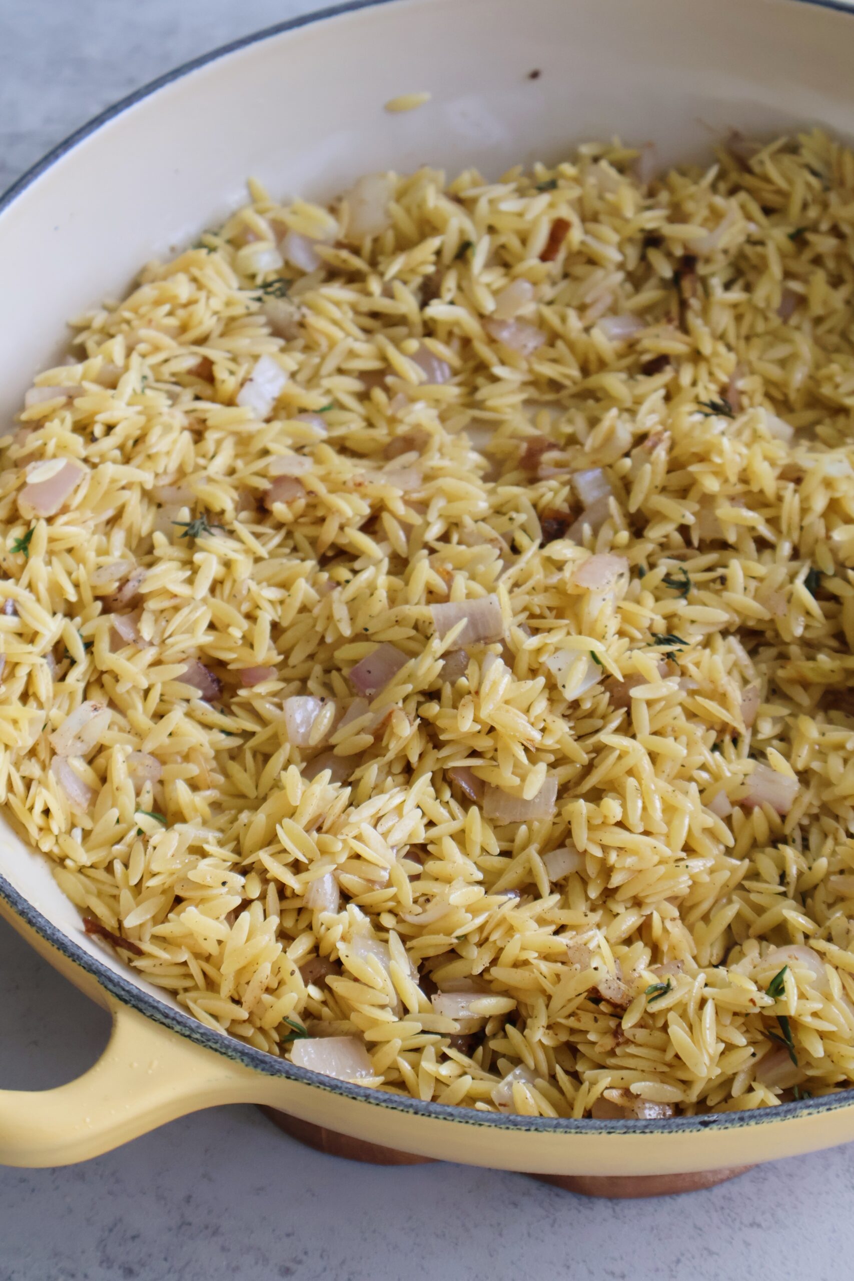 - Orzo- I love this recipe with orzo, but pearl couscous would work well as a substitute