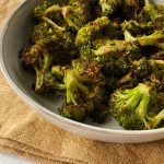 The broccoli florets are tossed with extra virgin olive oil, salt & pepper, garlic powder, smoked paprika, and nutritional yeast. The nutritional yeast gives the perfect vegan “cheesy” flavor,” and adds the best crisp!