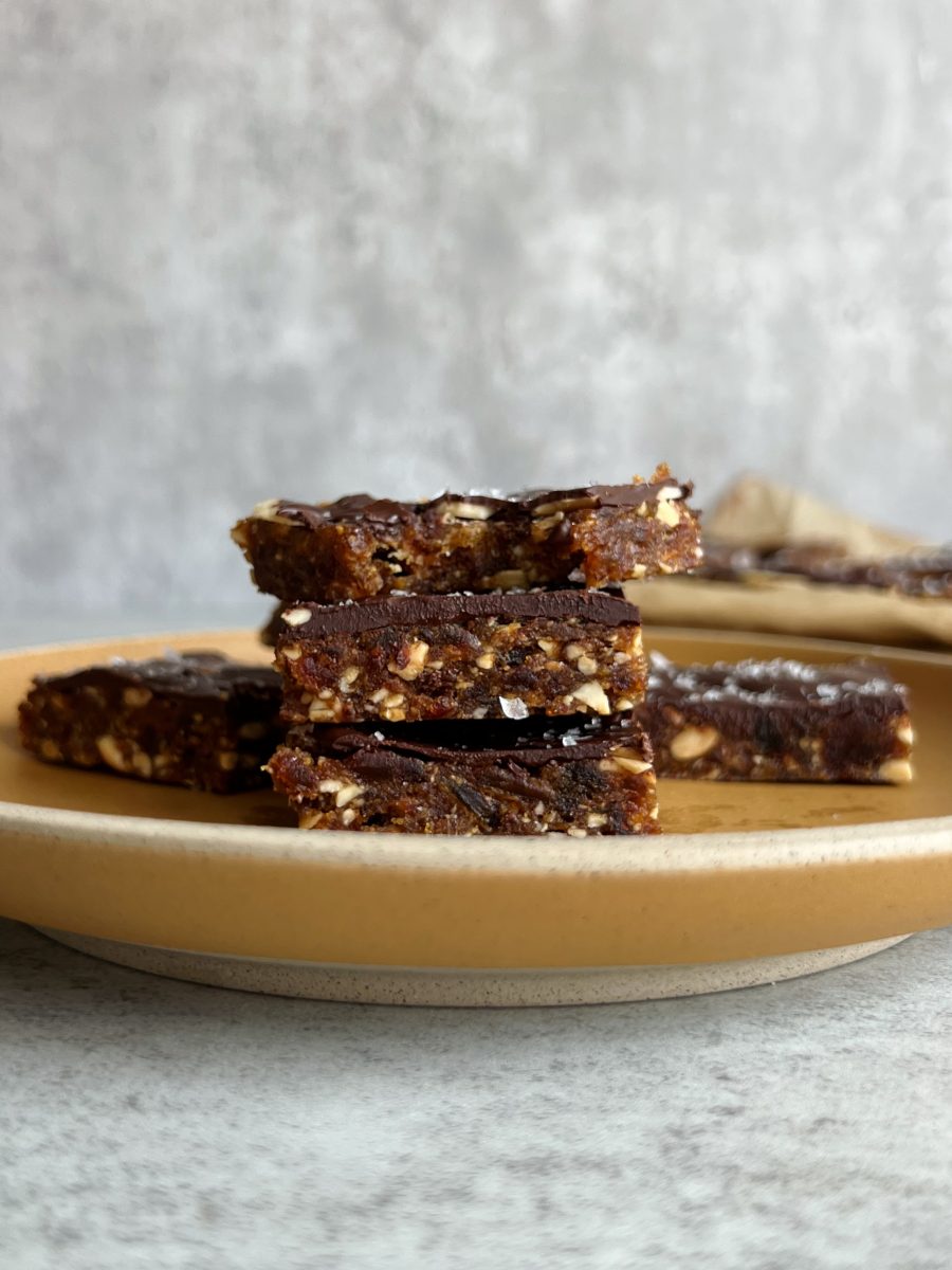 If you’re anything like me, you love stocking your freezer with a chocolate treat to end the day with. Date and nut bars are the perfect post-dinner snack made with a variety of different nuts and medjool dates.