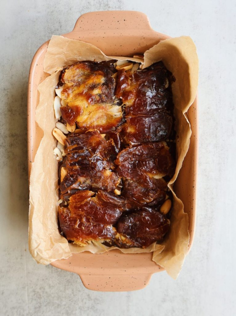 - Remove the pits from the dates and press them with your fingers to flatten them. Set aside.