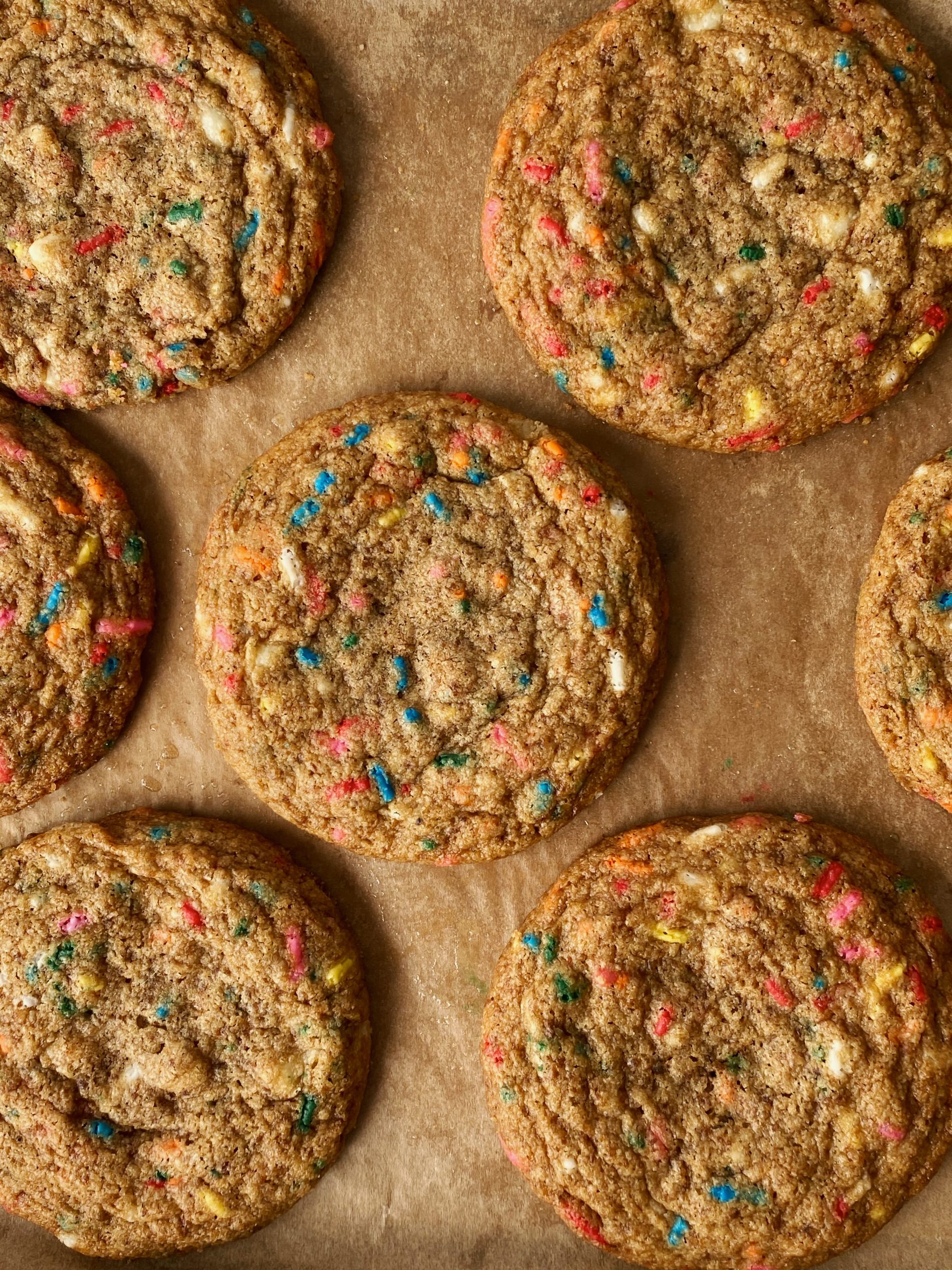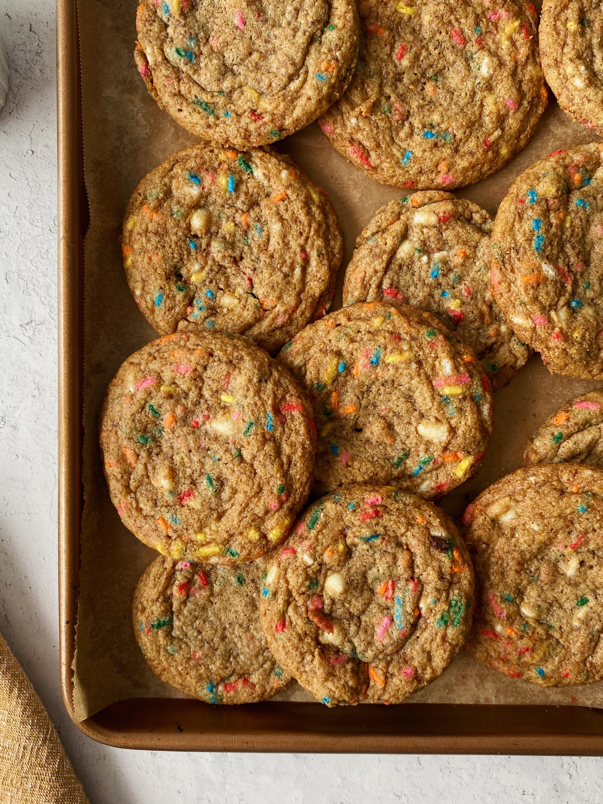 If you guys haven’t noticed, I’ve been on a bit of a “birthday cake flavored” kick lately. In the last two weeks I’ve shared my Gluten-free Birthday Cake Blondies and Birthday Cake Energy Bites, and I’m so excited to *virtually* share these cookies with you!