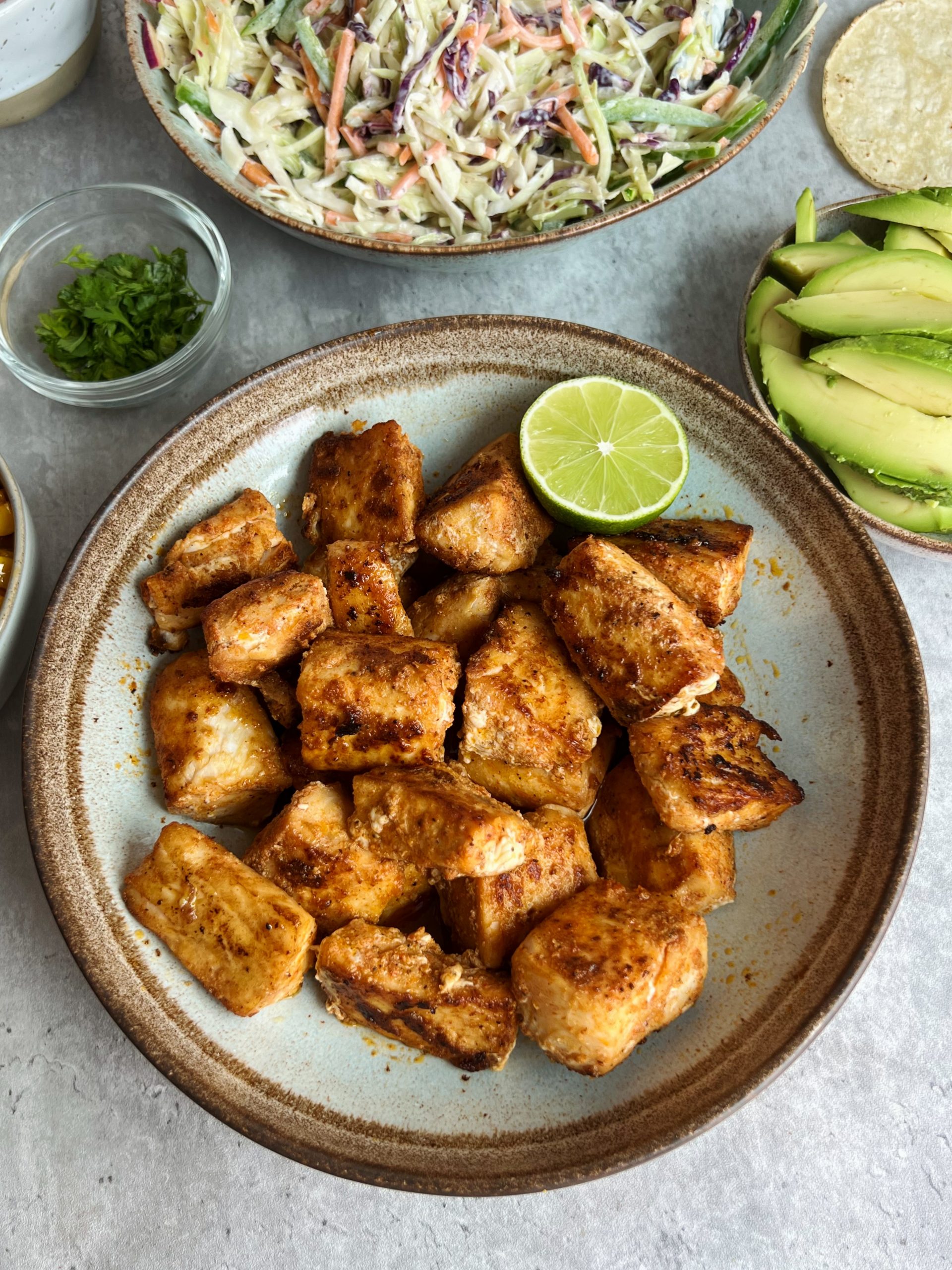 My top fish choices for fish tacos are usually mahi mahi or cod. You can make these with any fish you like, or could even substitute grilled tofu to keep these plant-based.
