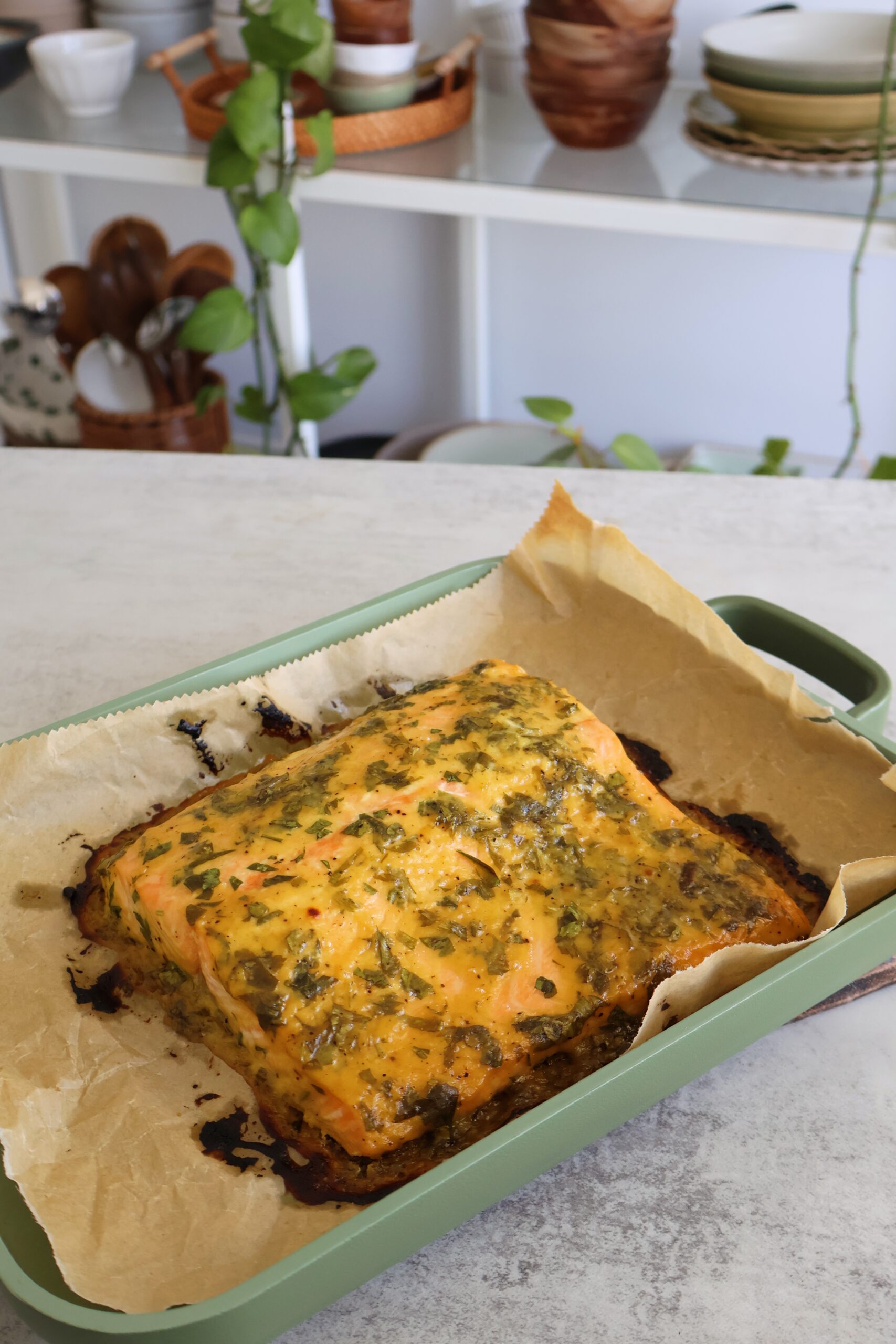 This maple dijon salmon is a delicious and simple way to enjoy fish. The salmon is topped with a sweet & savory marinade and fresh parsley, then perfectly cooked until flakey. It’s such a simple recipe, but one that the whole family will enjoy.