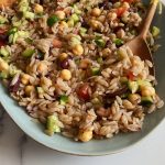 It’s one of those simple recipes that take 30 minutes to whip up. I love topping my bowl with feta cheese for extra flavor, and pairing it with a side of grilled salmon- like this pan-seared salmon recipe.
