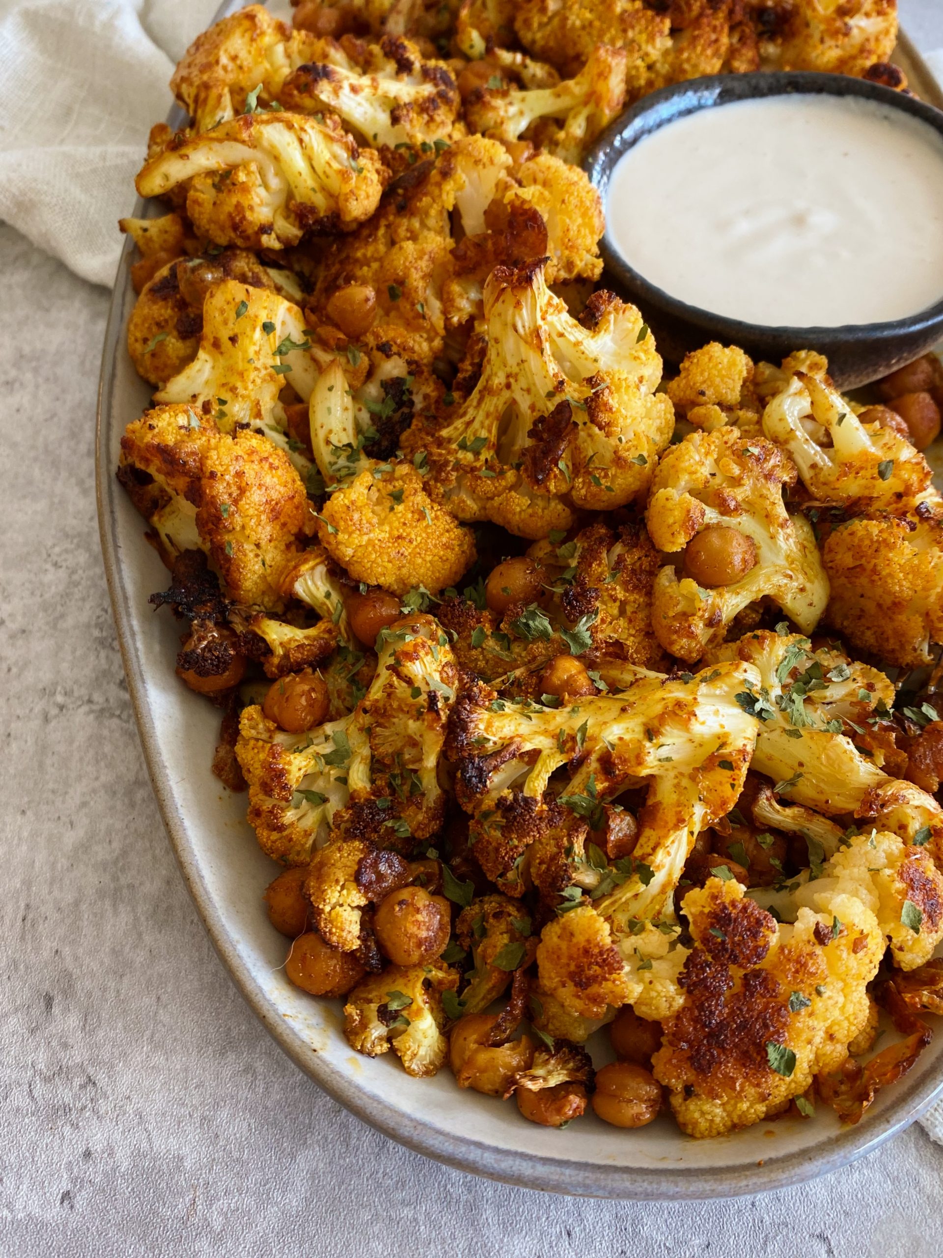 This flavorful Moroccan spiced cauliflower dish is a delicious side dish to serve to your family and friends. Pair it with a creamy yogurt tahini dip for the perfect balance of flavors.