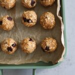 - Using wet hands, scoop about 1 tbsp of the mix and roll into bites. Place them onto a parchment lined tray