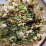 This hearty side dish is made with pearl couscous, roasted za’atar cauliflower, sauteed leeks, feta cheese and a sweet and zesty honey mint vinaigrette.