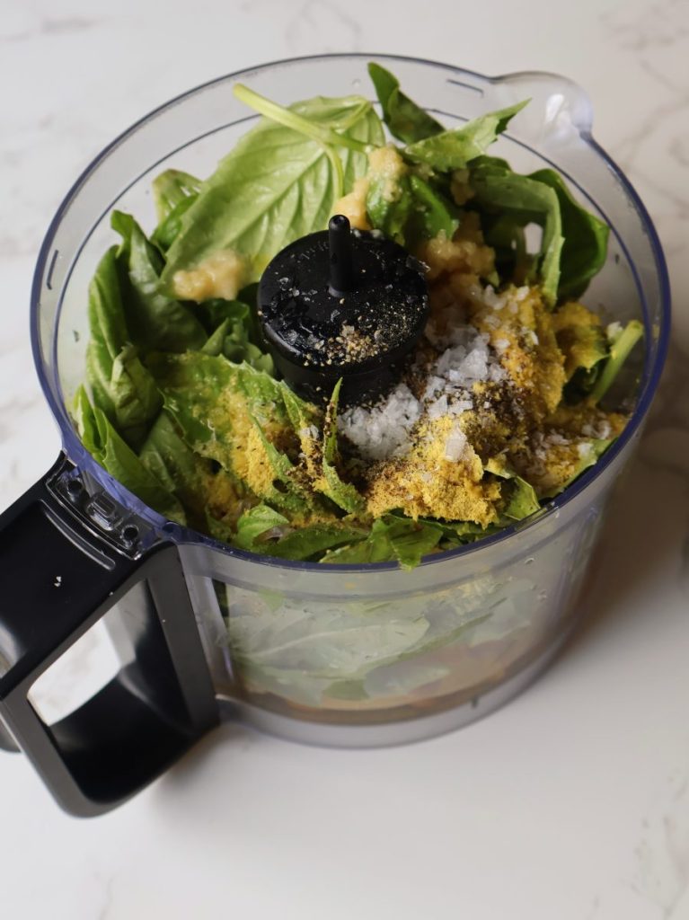 - Prepare the pistachio pesto by adding all of the pesto ingredients to a food processor or blender and blending until smooth. Add more olive oil, if needed, for a smoother pesto.