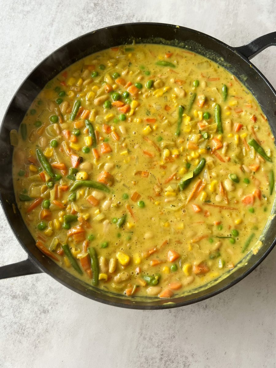 The dish is packed with savory flavor and can easily be customized. It has a creamy and hearty filling that can be made with any blend of vegetables you like.