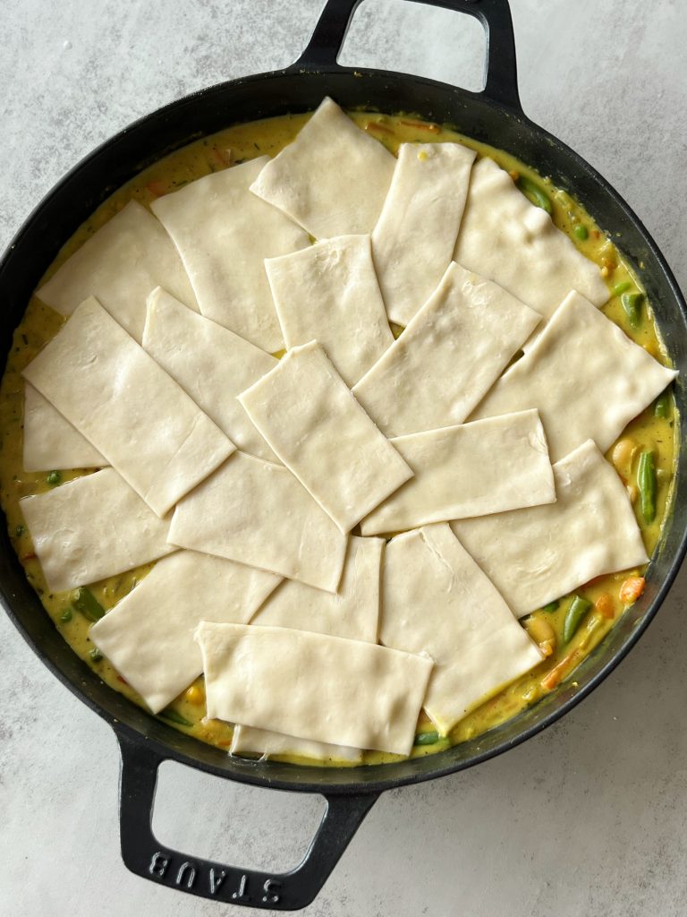 This is such a staple in our house now! My husband and I both love it, he’s even a meat eater and does not miss the meat in this pot pie. Leaves us with tons of leftovers too! We will just put it in the fridge in the pan and reheat it the next day for dinner again.