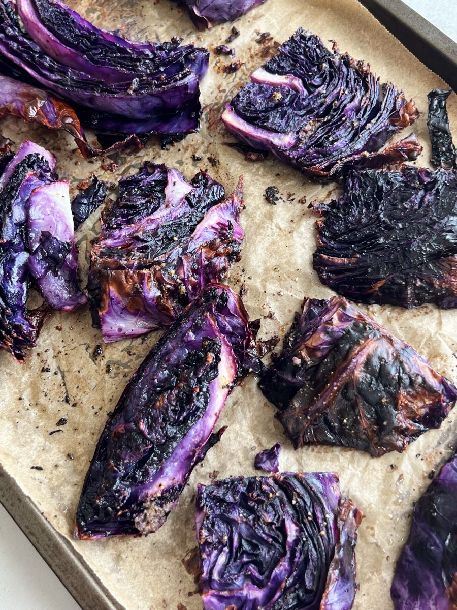 Roasted cabbage is the perfect side dish to baked salmon or grilled chicken. Try it with my Slow Roasted Sumac Salmon and a side of Pearl Couscous Salad for the ideal dinner combination.