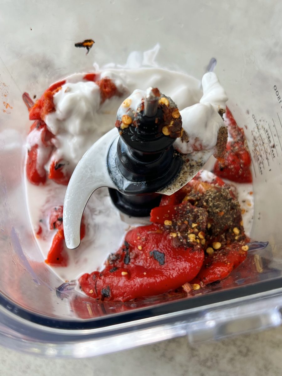 - Blend the roasted red pepper sauce ingredients until smooth