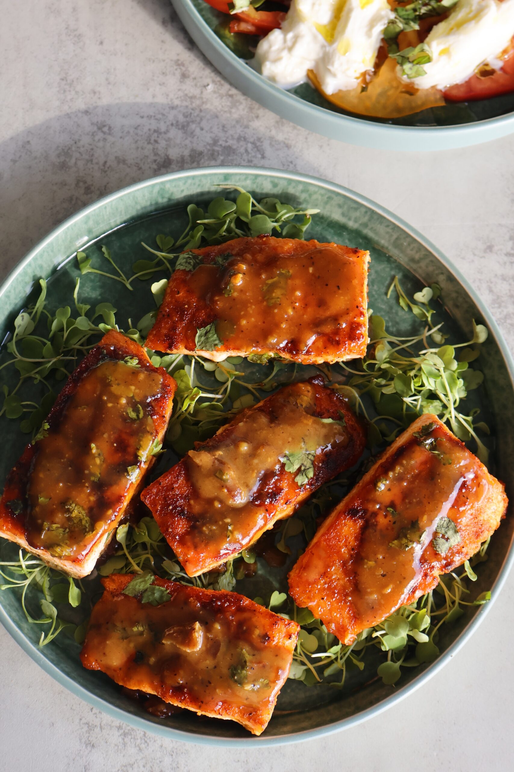 I love to serve this with a heirloom tomato salad topped with burrata, olive oil, flakey salt and basil.