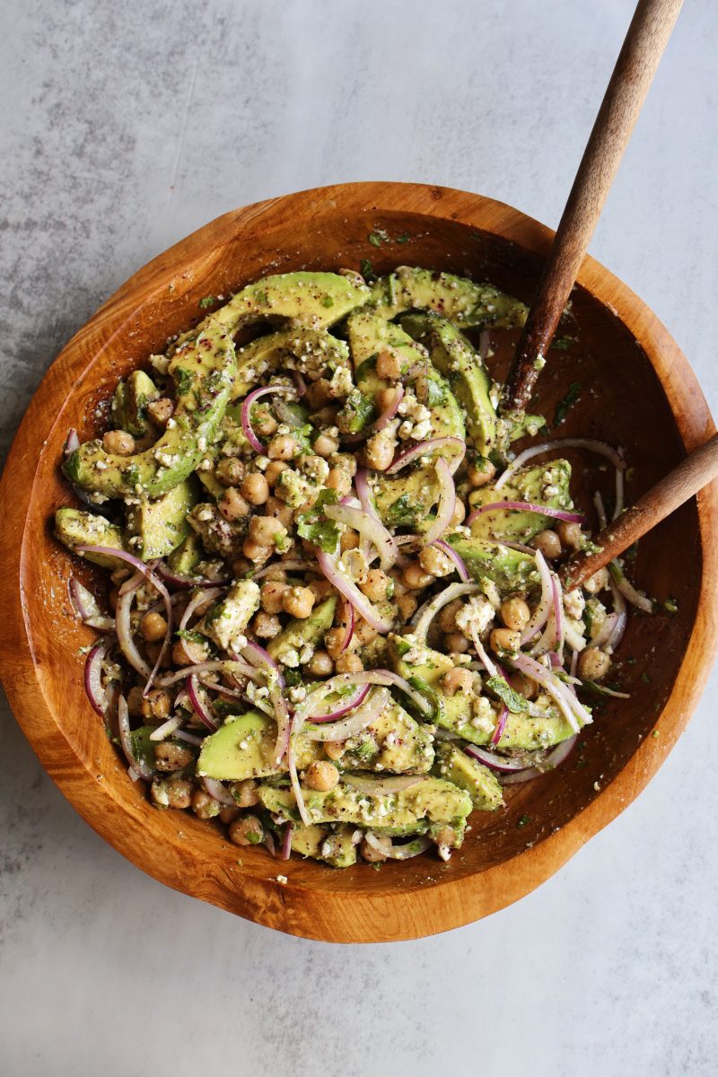Avocado chickpea salad with feta and sumac is a simple side dish to serve with any meal. It’s fresh & flavorful, and comes together in under 20 minutes.