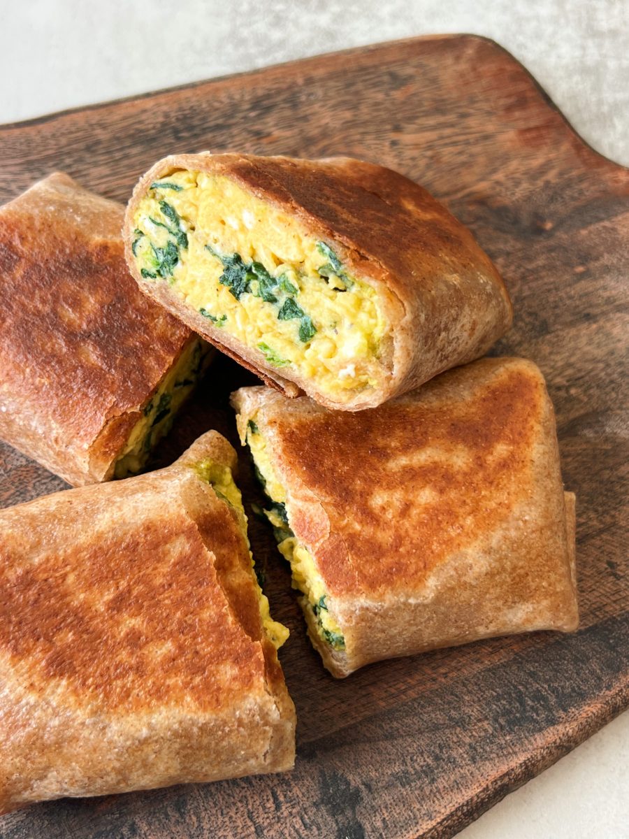Having my freezer stocked with a grab-n-go breakfast is essential for a well-balanced morning. These spinach and feta egg wraps pack in protein, fiber and whole-grains, and are ready in under 30 minutes. They can be frozen or refrigerated, and enjoyed throughout the week or months to follow.