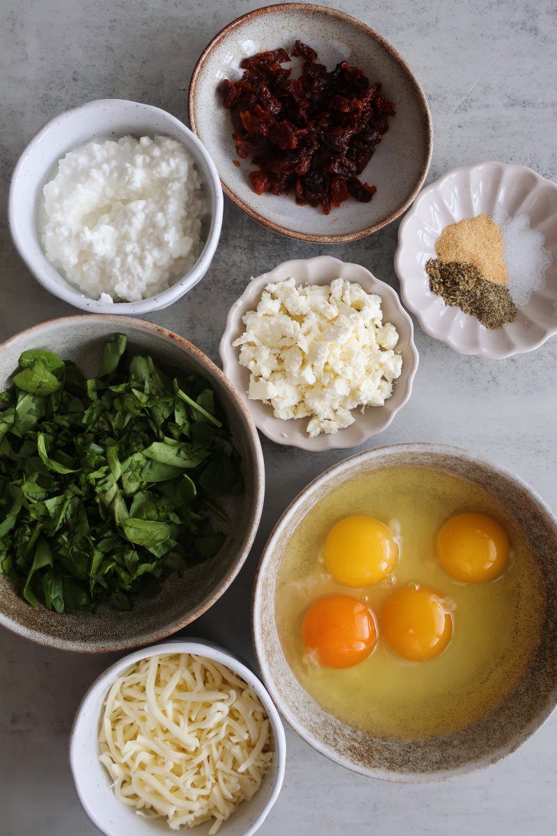 I love the combination of sun-dried tomato, spinach and feta cheese, but you can modify this recipe by using a different combination of veggies and cheeses