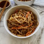These noodles are loaded with flavor and are a great dish to pair with tofu, chicken or fish, like this honey garlic salmon. You can use any noodles you like, and even make this gluten-free if needed. If you use a bean-based pasta, you add some extra fiber and protein to the dish without any extra work!