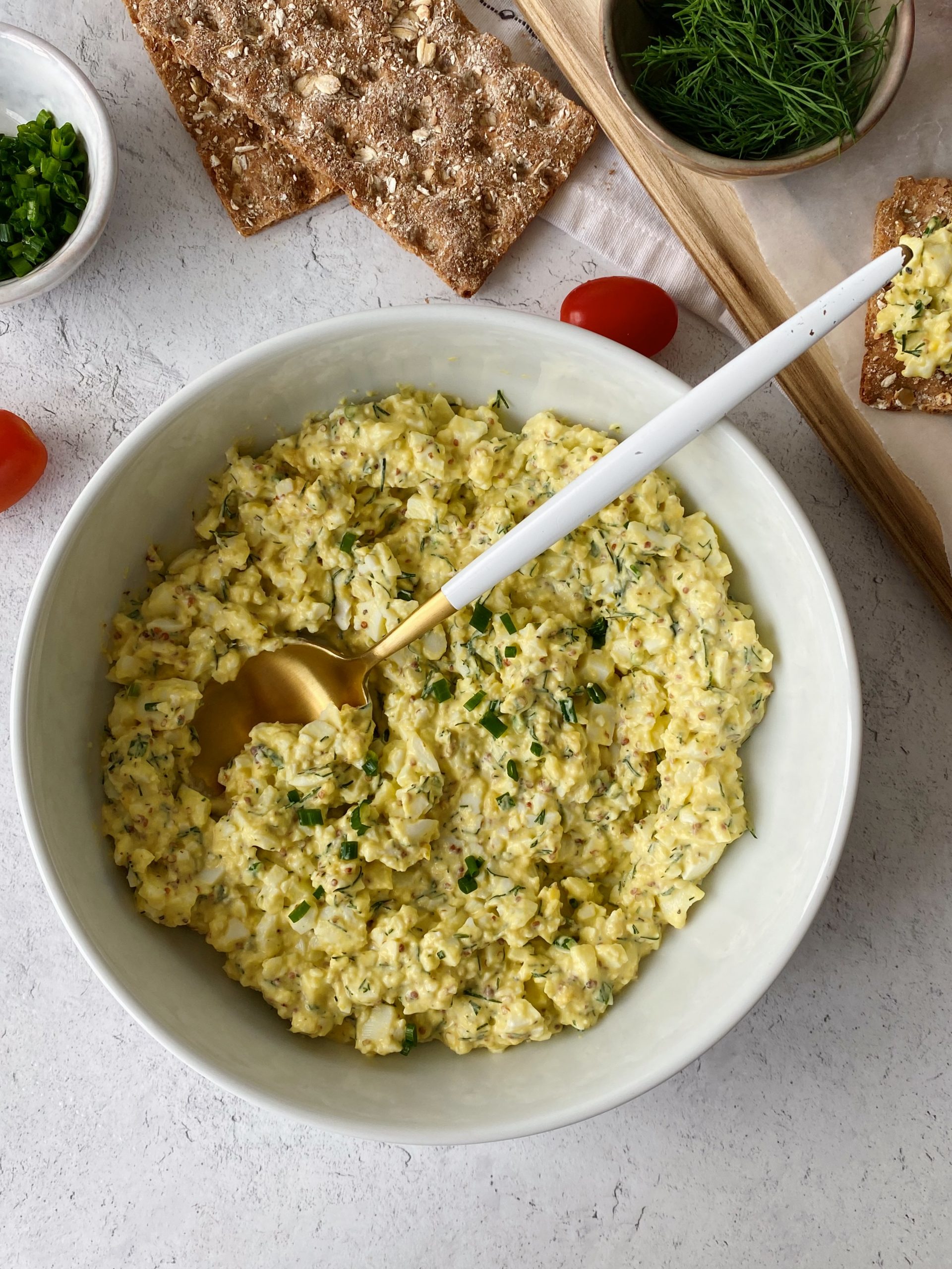 This flavorful salad is packed with dill, chives, and a hint of dijon mustard. It’s so creamy and delicious, and makes the perfect sandwich filling. It comes together in just a few easy steps.