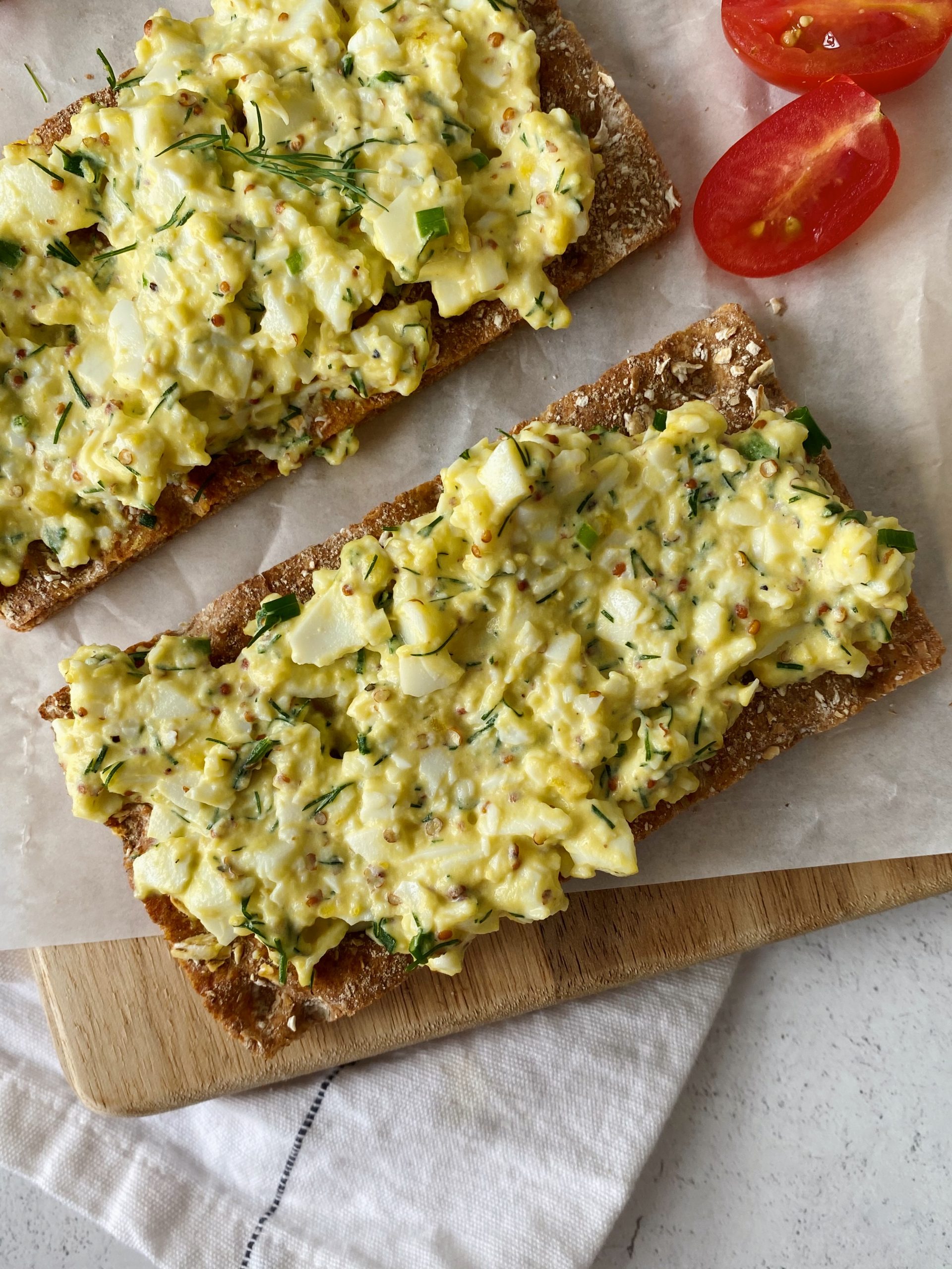 When I’m looking for a quick savory snack, I love to spread this egg salad over a couple of whole grain crackers.
