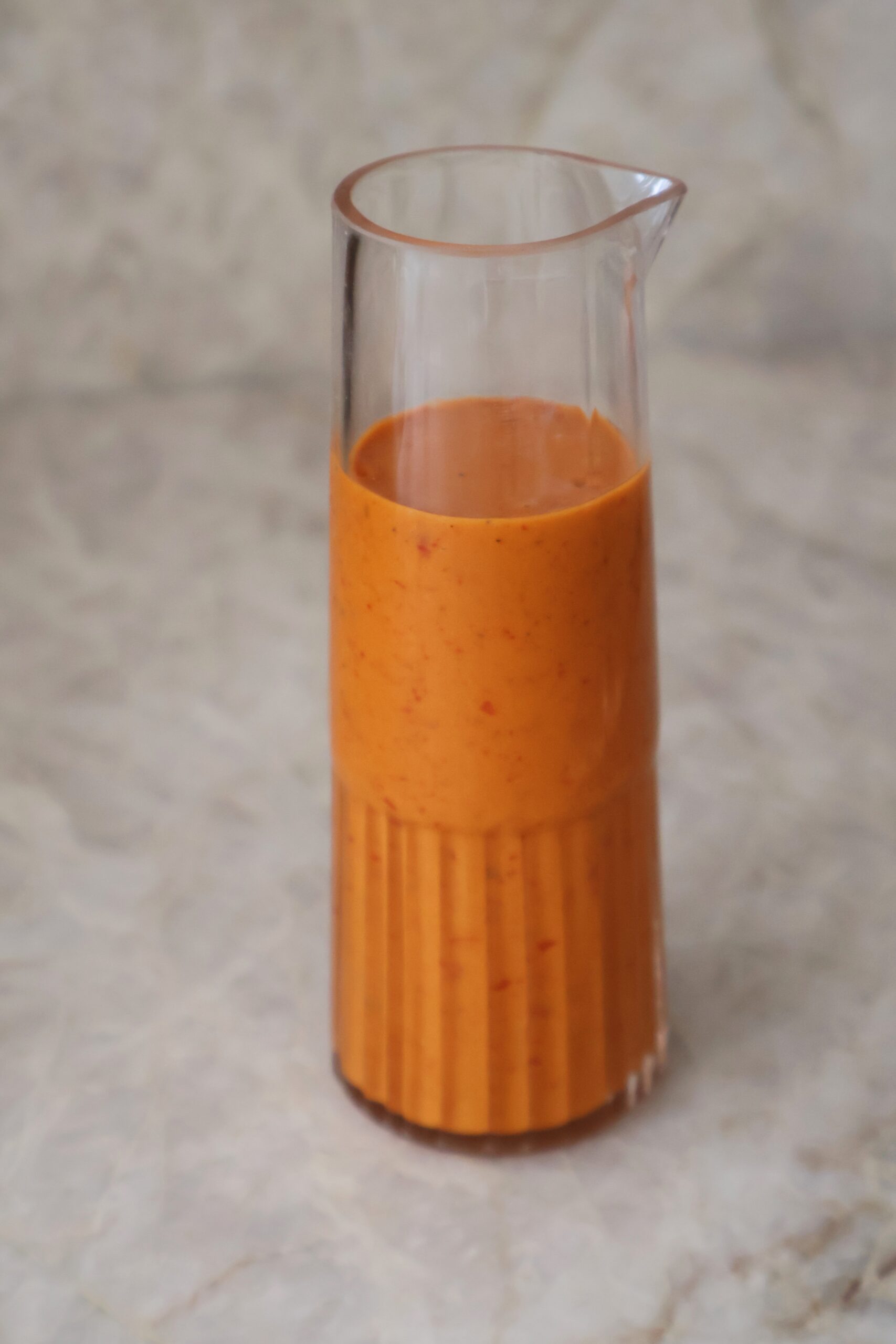 It has the perfect amount of sweetness, zesty and nutty flavor, with a touch of heat from the harissa. If spice isn’t your thing, you can easily leave out the harissa. It’s a delicious sauce to serve over veggies or any protein of your choice.