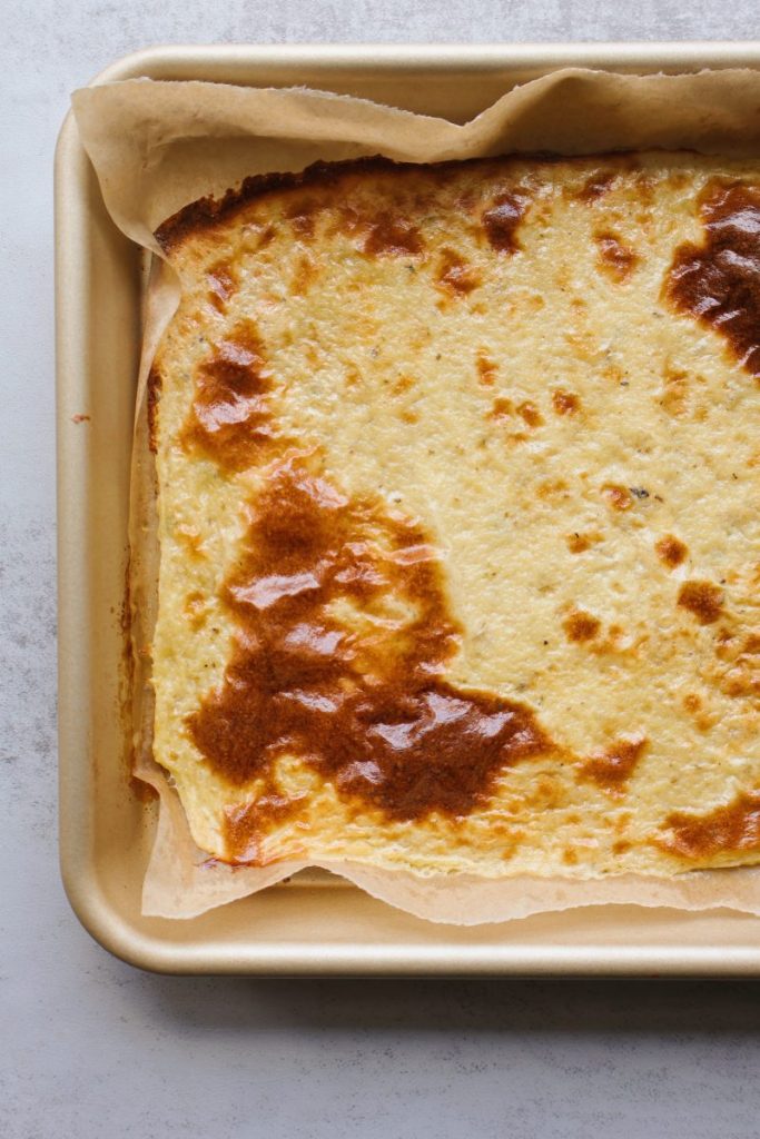 I needed to add probably about a quarter cup of water to the batter for it to properly blend in my bullet because it was so thick. I used the pressed block cottage cheese so that could be why. It was still very thick when I scooped it onto the baking sheet but it turned out really well. The edges were crispy, which was really nice. I seasoned the batter with only salt and ground rosemary. It was lovely! It was also huge so I cut it in half. Next time, if I’m just feeding myself, I’ll probably just use half a cup of cottage cheese, an egg and a bit of water with seasoning. So good!