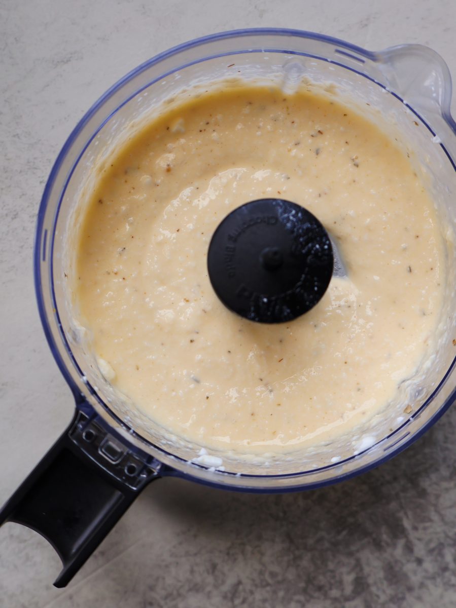 - Add the cottage cheese, egg and seasonings to a food processor or blender