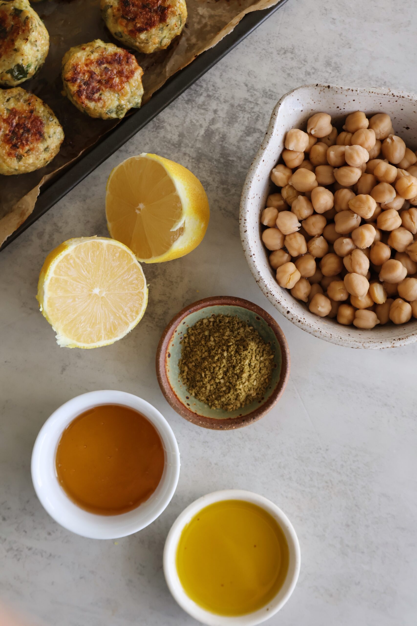I love a simple chicken meatball recipe that can be made and frozen, or prepared and enjoyed throughout the week. These za’atar chicken meatballs are full of flavor, and while delicious on their own, pair so well with sweet lemony chickpeas.