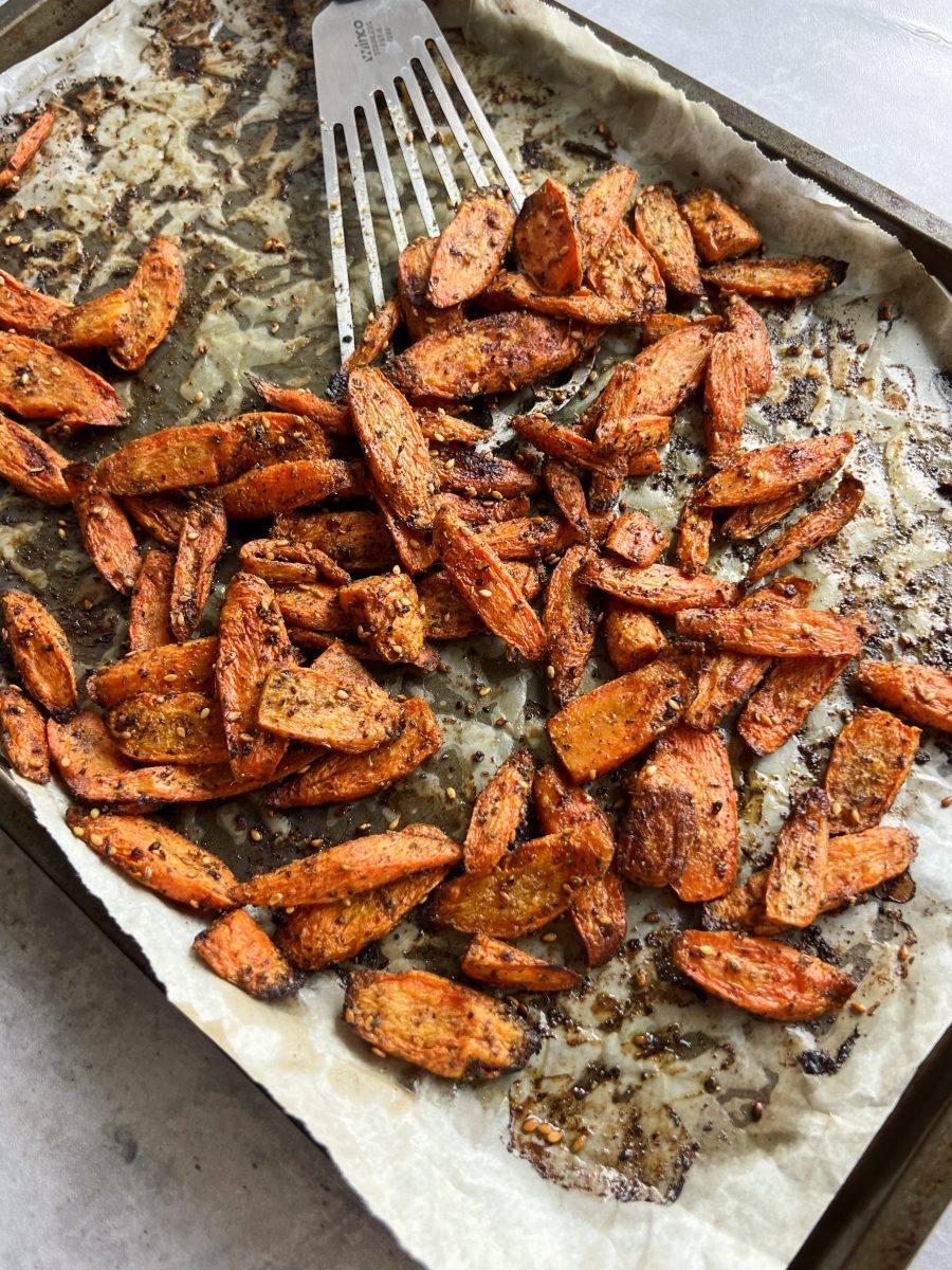 These roasted za’atar carrots are packed with so much delicious flavor, and are a fun way to change up your veggie game. They’re seasoned with za’atar spice, cumin, and salt & pepper, and have a natural sweetness once they’re baked.