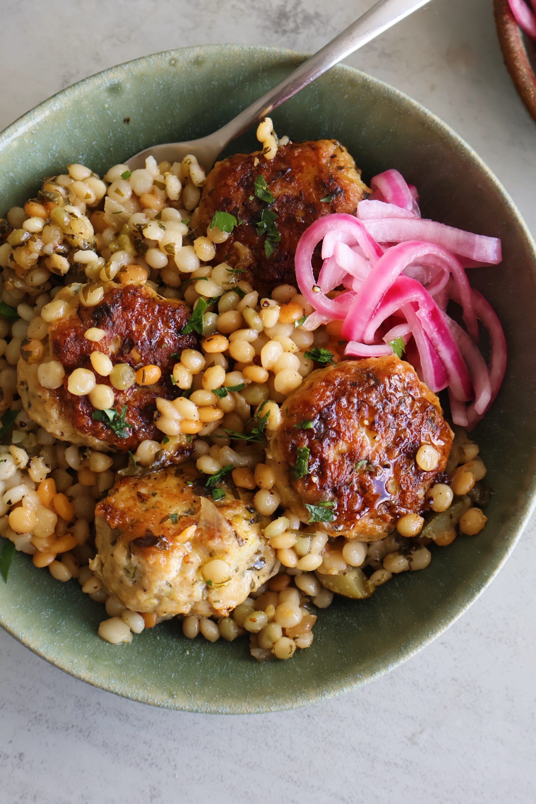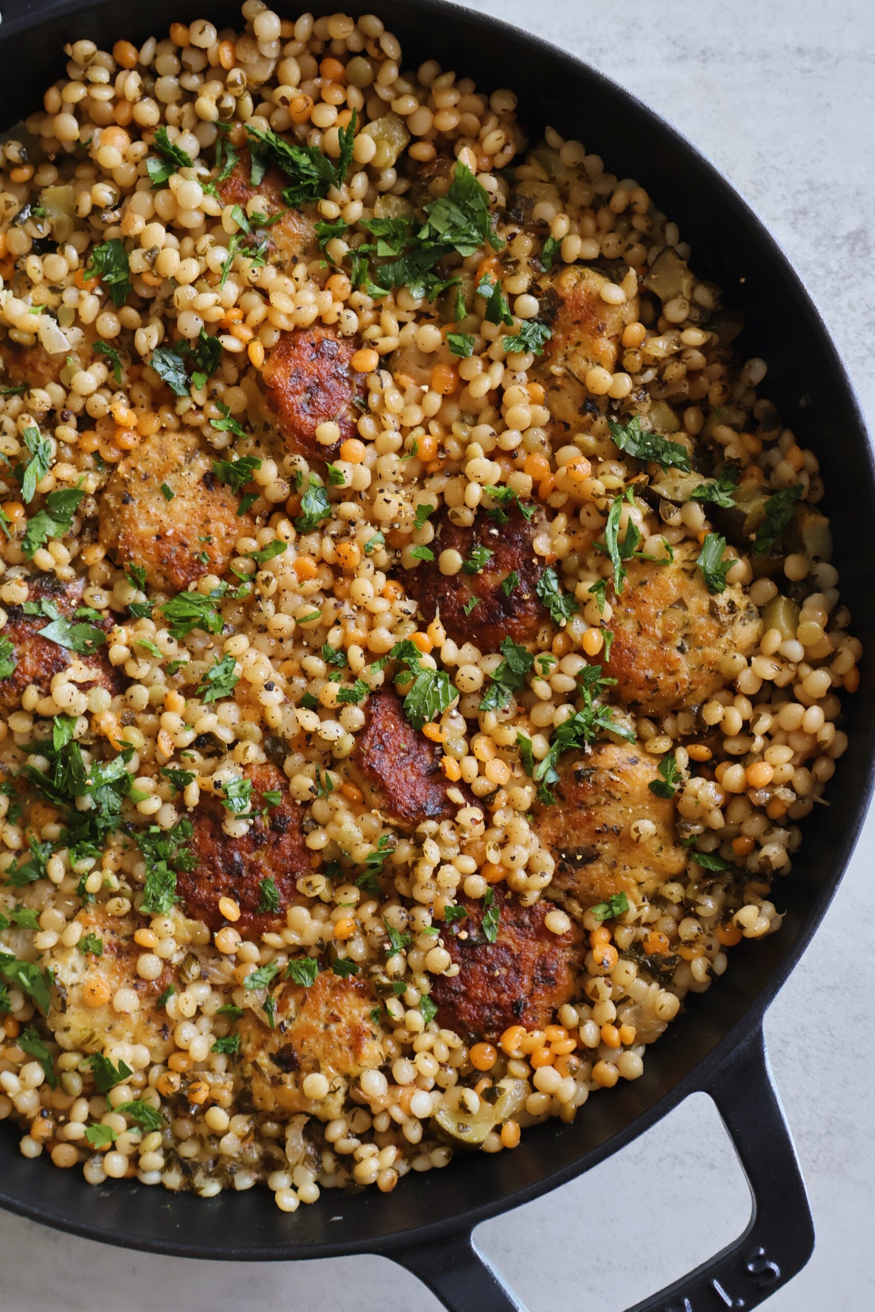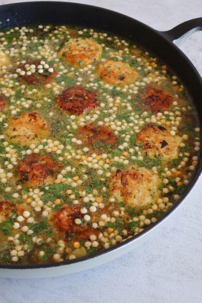 Zucchini Chicken Meatballs with Pearled Couscous